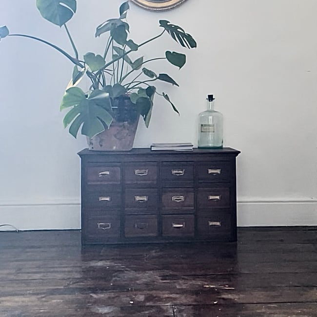 This stunning French oak 12 drawer cabinet is a rare find. It’s a beautiful piece of furniture. It can be styled many different ways, on a counter or on the floor as a table. It’s perfect for hiding away your bits and bobs. More photos to follow. DM for an appointment to veiw in Glasnevin or for a video Dimensions are 86cmsx 48cms x 37cms